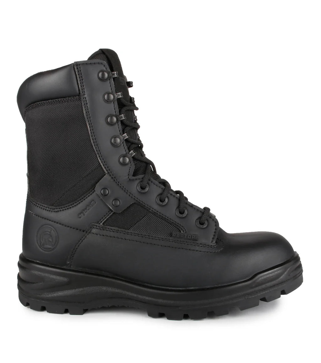 8'' tactical boot in leather and PU coated nylon with side zipper, Vibram TC4+ sole, lightweight composite anti-perforation sole and breathable waterproof membrane resistant to pathogens.